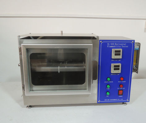 उपकरण में दो भाग होते हैं: नियंत्रण बॉक्स और दहन बॉक्स। नमूना दबाना द्वारा समतल किया जाता है और दहन बॉक्स के ब्रैकेट पर रखा जाता है। लौ को एक निश्चित समय के लिए नियंत्रण बॉक्स द्वारा प्रज्वलित किया जाता है, और लौ बुझ जाती है। नमूना की लौ प्रसार का निरीक्षण करें, लौ को नमूना पर एक निश्चित दूरी फैलाने के लिए लगने वाले समय को मापें, लौ की प्रसार गति की गणना करें, और नमूना की लौ प्रतिरोध का मूल्यांकन करें।