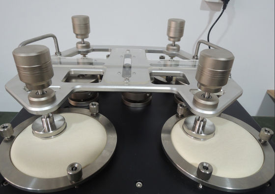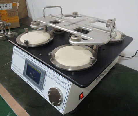 एक मानक कपड़े के टुकड़ों के खिलाफ कई परिपत्र परीक्षण नमूनों को रगड़ा जाता है