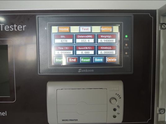 परीक्षण चैनल के सामने से नमूना इंजेक्ट किया जाता है, और उपकरण स्वचालित रूप से ऑब्जेक्ट के वेग को पकड़ता है और स्वचालित रूप से परीक्षण के सामने और पीछे के पदों के बीच के अंतर को रिकॉर्ड करता है।मापा समय मूल्य और नमूने के वजन के आधार पर, नमूना के गतिज ऊर्जा मूल्य और इसके खतरे की गणना की जा सकती है।