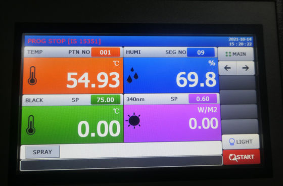 2. रंगीन टच स्क्रीन, वास्तविक समय में चैम्बर की स्थिति को इंगित करती है, विकिरण, तापमान (बीपीटी, बीएसटी, चैम्बर), आर्द्रता को पूर्व निर्धारित करने और उनमें से गतिशील वक्र को प्लॉट करने में सक्षम है।ऑपरेटर बस आवश्यक परीक्षण मॉड्यूल और परीक्षण मानकों का चयन करता है;अंग्रेजी उपयोगकर्ता इंटरफ़ेस, आरेख चैम्बर की स्थिति दर्शाता है, उपयोग में आसान;