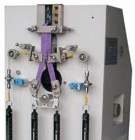 जिपर परीक्षक, जिपर (स्लाइड फास्टनर) के प्रत्यावर्तन के प्रतिरोध को निर्धारित करने के लिए, परीक्षण नमूने को पार्श्व और अनुदैर्ध्य तनाव के तहत चक्रीय संचालन की एक निर्दिष्ट संख्या के अधीन किया जाता है।